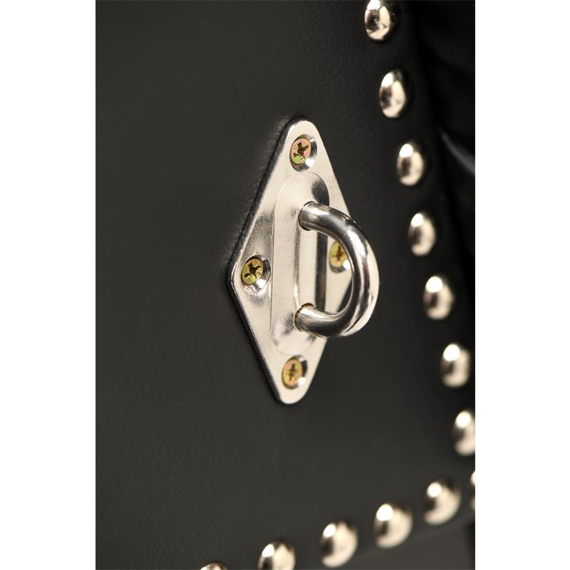 Transform your space by adding a classic bondage bench as the centerpiece of your pleasure. The classic design and soft, vegan-friendly black leather with striking metallic details stand out and invite you to surrender to your darkest desires. The soft faux leather feels divine against bare skin as you enjoy sensual play with your partner! Secure them to the bench with handcuffs that attach to any of the 6 restraint points. Excite and torment your submissive as you please with different impact toys and games! This sturdy wood and metal bench supports up to 300 kg, so you can both climb on and enjoy each other. The padded cushions make it comfortable for both of you to kneel, sit, or reclined for sensual scenes. After play, simply clean it up until next time. All metal is nickel-free for sensitive skin.