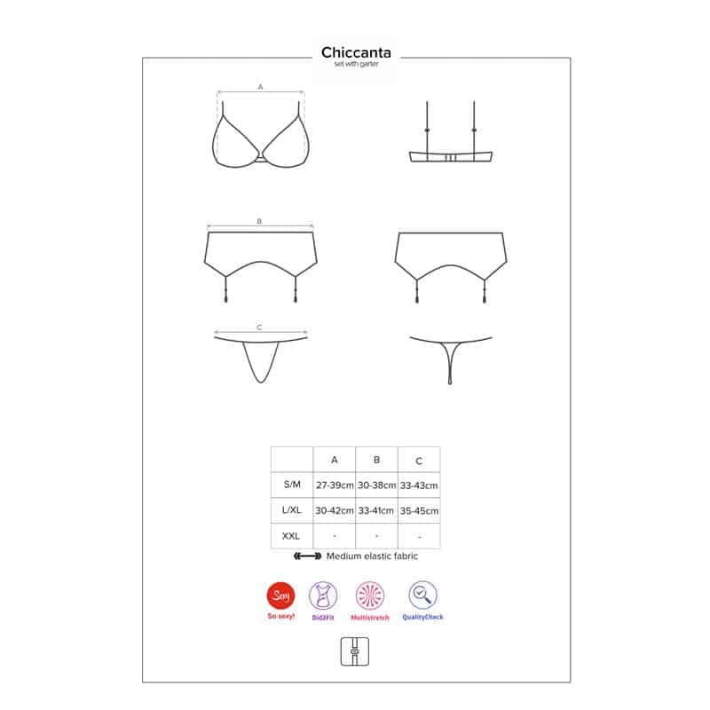 Unveil a new realm of elegance and allure with the exquisite Chiccanta 3 Pieces Set. Designed to celebrate your silhouette and ignite confidence, this luxurious ensemble is more than just lingerie; it's an experience in sophisticated charm and intimate beauty. Perfect for special evenings or simply to indulge in self-love, this set promises to elevate your intimate wardrobe with its captivating design and exceptional comfort.