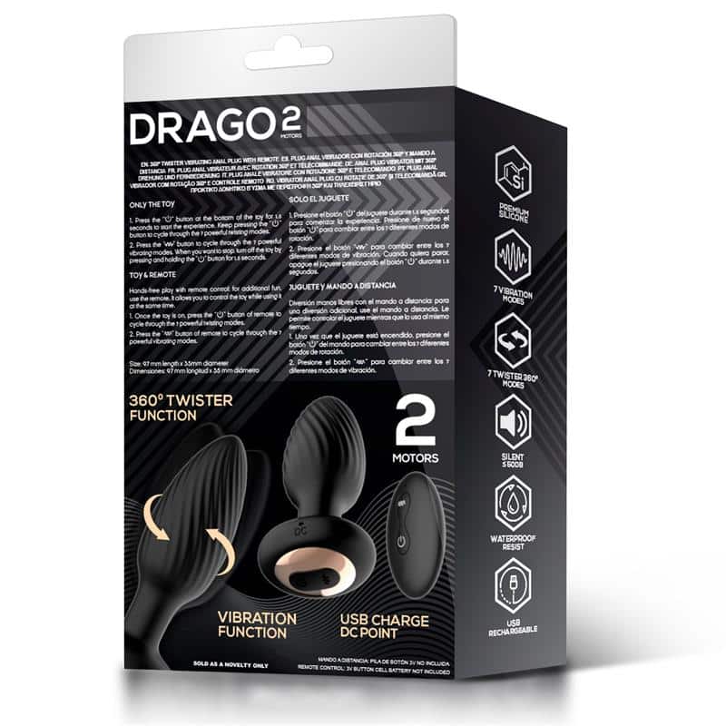 Elevate your intimate moments with the Drago Butt Plug. Enjoy intense vibration, unique 360º twister movement, and discreet remote control for a personalized and thrilling experience. Discover new depths of pleasure and control.