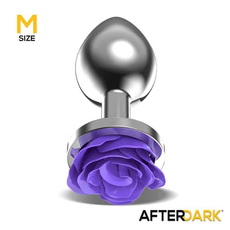 Metal Anal Plug with Purple Rose Base – Size M