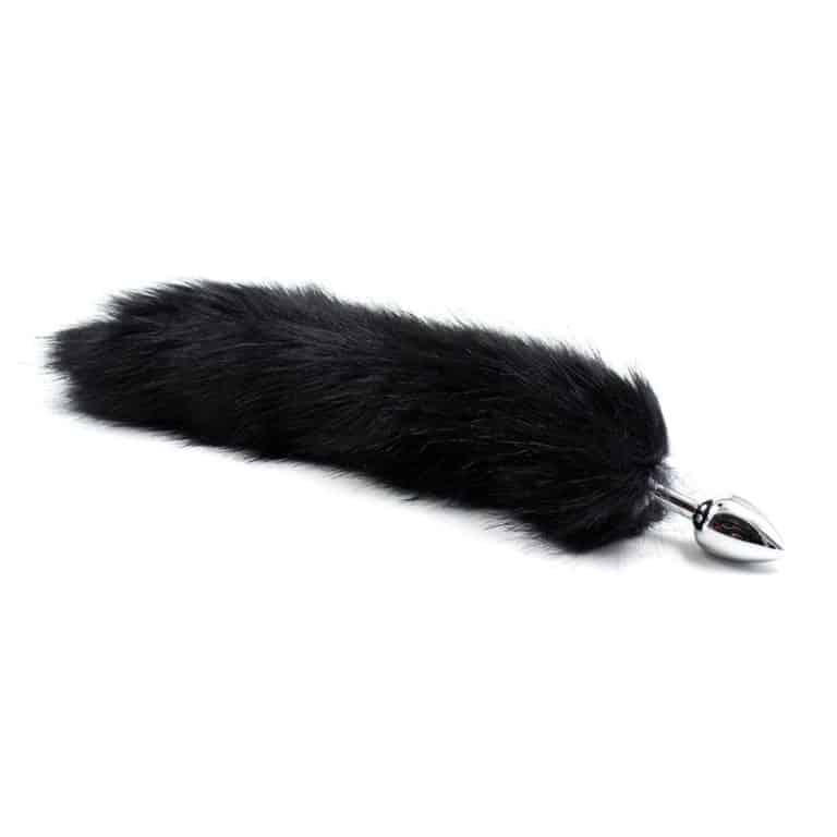 Metal Butt Plug Foxy Tail Velvet Touch 40 cm Black
